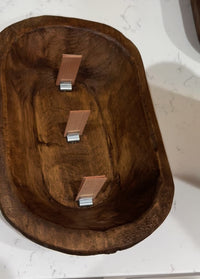 Expertly crafted with 20 oz of premium soy wax and wooden wicks, this 10in x 6in x 2.3in dough bowl candle offers an even burn over 24-36 hours adding a rustic touch to any space. Enjoy the crackling ambience provided by the wooden wicks. Made with kosher soy wax, it's the perfect gift for any occasion. Offered as unscented or choose from a variety of captivating scents.